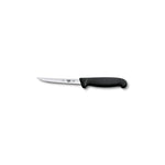 Victorinox Fibrox boning knife with extra thin, 15 cm long blade and black non-slip ergonomic plastic handle.