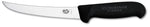 Victorinox Fibrox boning knife with 15 cm long Scandinavian blade and black plastic handle.