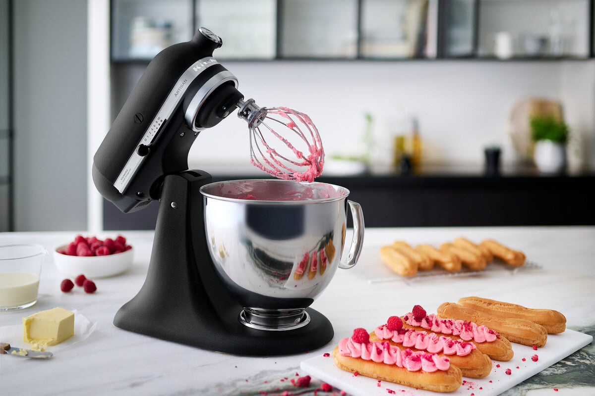Plus, as you get more with the mixer 5KSM175PS, there’s an additional 3 L bowl too. This means you can switch between recipe steps and keep creating without having to stop and wash up. The mixer comes with a flex edge beater that scrapes the bowl while mixing, in a kind of spatula effect. So, everything is mixed really thoroughly, even on sticky mixtures.