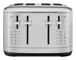 All metal design and trim adds real style. This 4-slot toaster from KitchenAid is built to last, so you can keep enjoying it for years to come. The manual high-lift lever means you can reach little bits of bread and check on progress without interrupting the toasting cycle.
