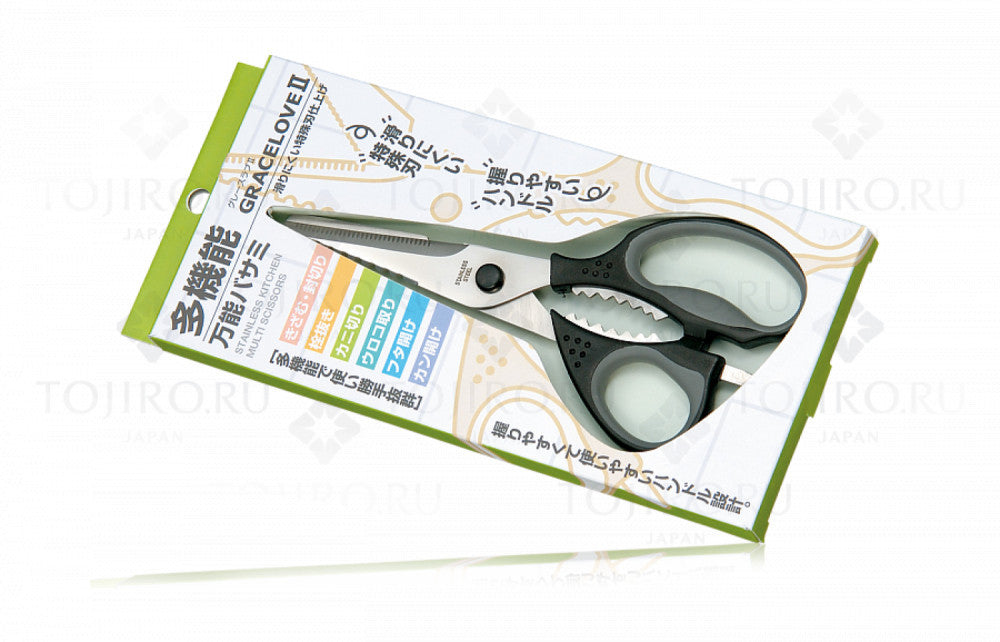 Tojiro Gracelove II Kitchen Scissors with nutcracker, screwdriver, bottle opener functions.